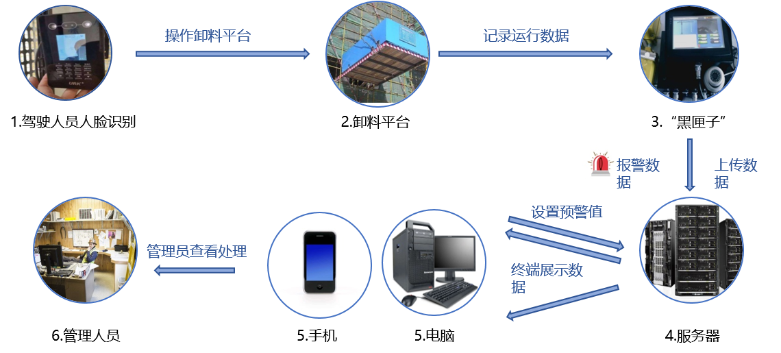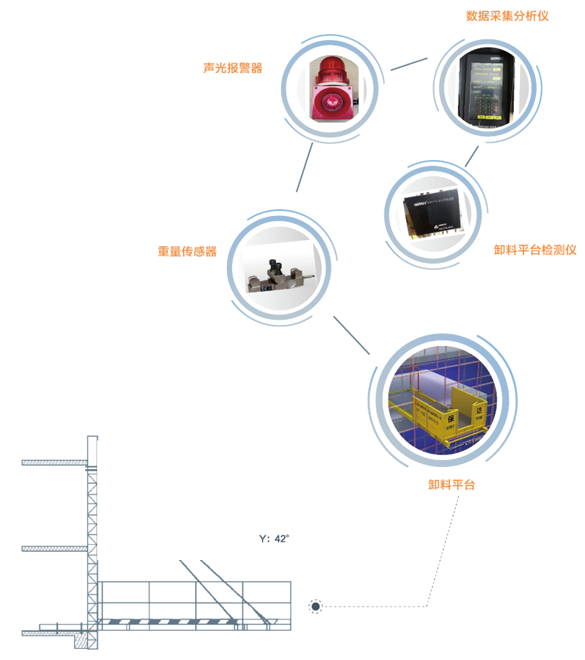 通過對(duì)卸料平臺(tái)載荷等相關(guān)情況監(jiān)測(cè)管理,重量傳感器實(shí)時(shí)進(jìn)行運(yùn)行過程的監(jiān)控,超超載進(jìn)行報(bào)警,并將在中數(shù)據(jù)傳輸?shù)狡脚_(tái)通知相關(guān)負(fù)責(zé)人。平臺(tái)附近安裝聲光報(bào)警器,第一時(shí)間進(jìn)行現(xiàn)場(chǎng)報(bào)警,避免可能發(fā)生的傾覆和墜落等事故。